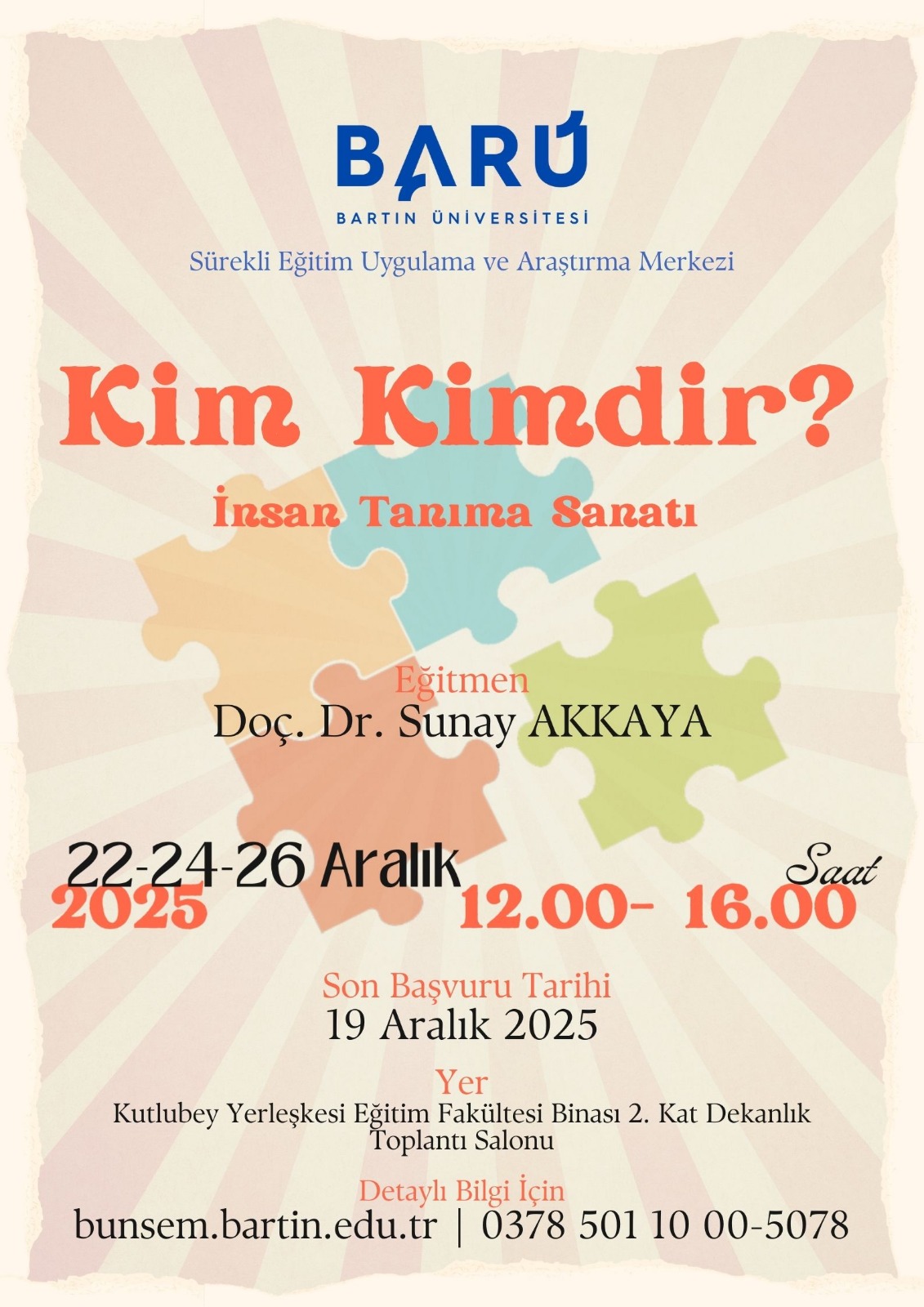 19 Aralık 2025 Cuma 17.00’a kadar kesin kayıt yapılmalı